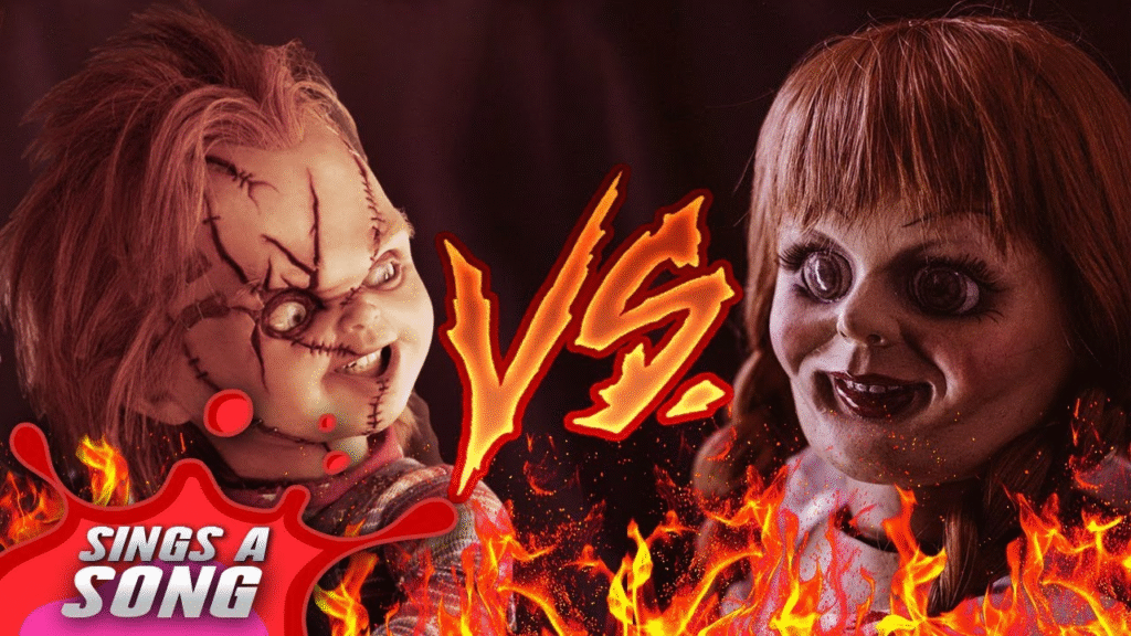 Annabelle does not move like Chucky; she waits. Her power is not in motion but in presence. She infects dreams, manipulates shadows, and bends reality to her will. Her silence screams louder than any blade. When these two forces of horror finally clash, the contrast is electric—pure carnage meets pure curse, and the result is cinematic dread distilled to perfection.