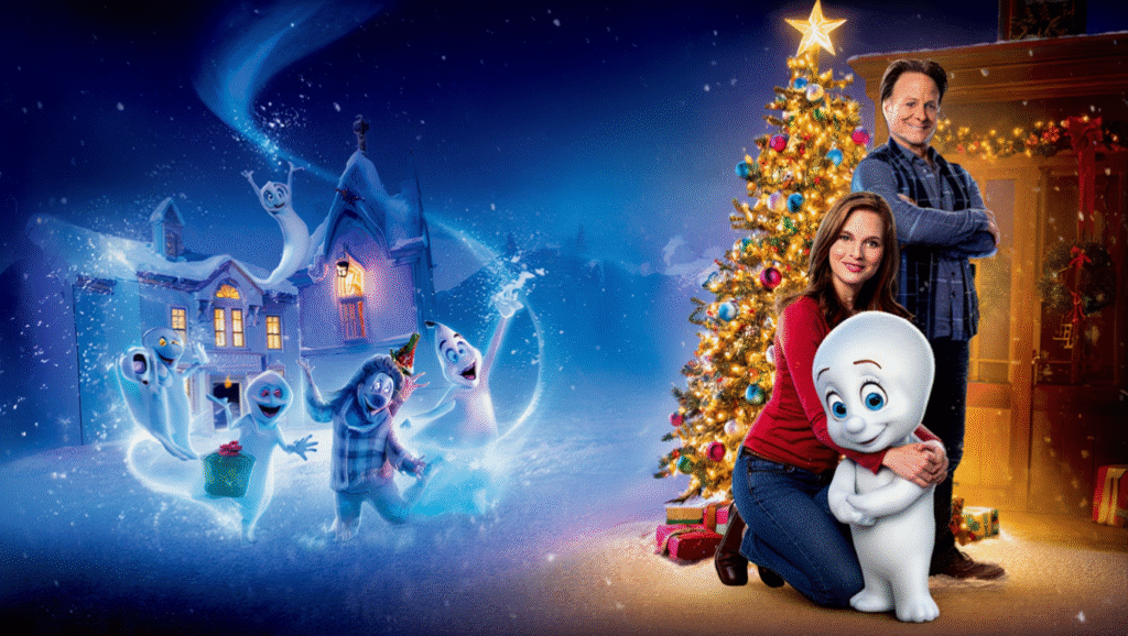 The story picks up with Kat (Christina Ricci) and her father, Dr. James Harvey (Bill Pullman), returning to the haunted Whipstaff Manor just in time for Christmas. The familiarity of the manor’s creaky floors and eerie atmosphere is quickly overshadowed by the arrival of their ghostly friend, Casper (voiced by Malachi Pearson), and his infamous uncles — Stretch, Stinkie, and Fatso. Although the trio remains as mischievous as ever, the holiday season brings more than just their usual antics. This year, an ominous new villain threatens the very heart of the manor, determined to unlock a secret hidden within its ancient walls.
