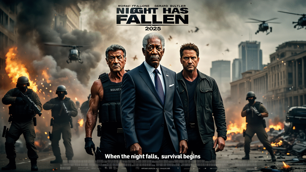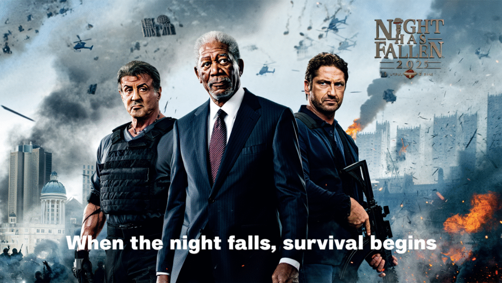 #NightHasFallen #MorganFreeman #SylvesterStallone #GerardButler #GlobalConspiracy #ActionThriller #Survival #ExplosiveAction #MilitaryHeroes