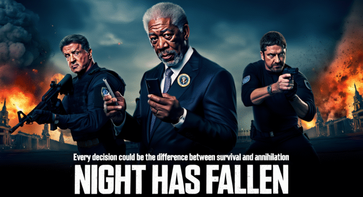 #NightHasFallen #MorganFreeman #SylvesterStallone #GerardButler #GlobalConspiracy #ActionThriller #Survival #ExplosiveAction #MilitaryHeroes