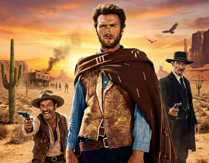 “When you have to shoot, shoot. Don’t talk.” The iconic trio of the Wild West reunites for a pulse-pounding, high-stakes sequel in Il buono, il brutto, il cattivo 2026. Clint Eastwood, Eli Wallach, and Lee Van Cleef reprise their legendary roles—Blondie the good, Tuco the bad, and Angel Eyes the ugly—in this thrilling new chapter filled with betrayal, power, and revenge.