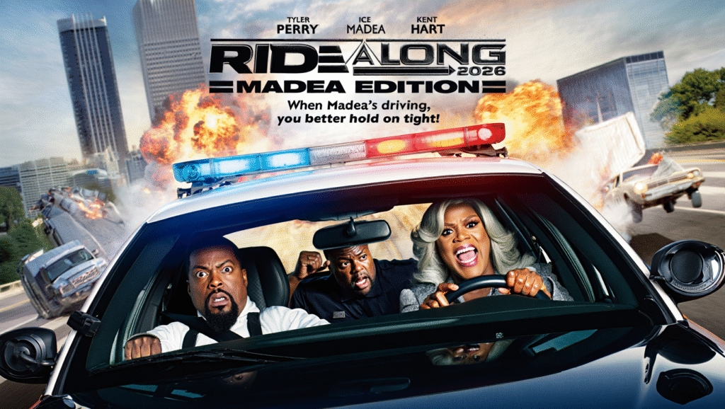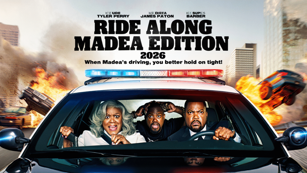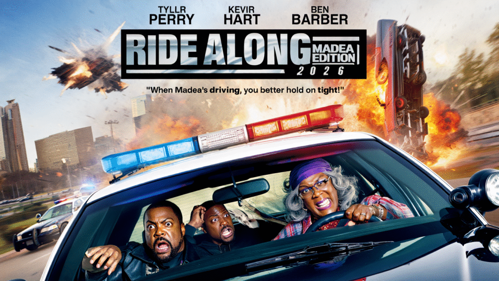 Get ready for the most chaotic, laugh-out-loud ride-along of your life in Ride Along: Madea Edition (2026). This action-packed comedy stars Tyler Perry, Ice Cube, and Kevin Hart in a wild, explosive, and hysterical adventure that takes rookie police trainee Ben Barber (played by Kevin Hart) on a ride-along that’s anything but routine. When Ben is paired with the no-nonsense Detective James Payton (played by Ice Cube) for a simple 24-hour patrol of Atlanta, he thinks it’s going to be a breeze—until Madea (also played by Tyler Perry) decides to join the fun.