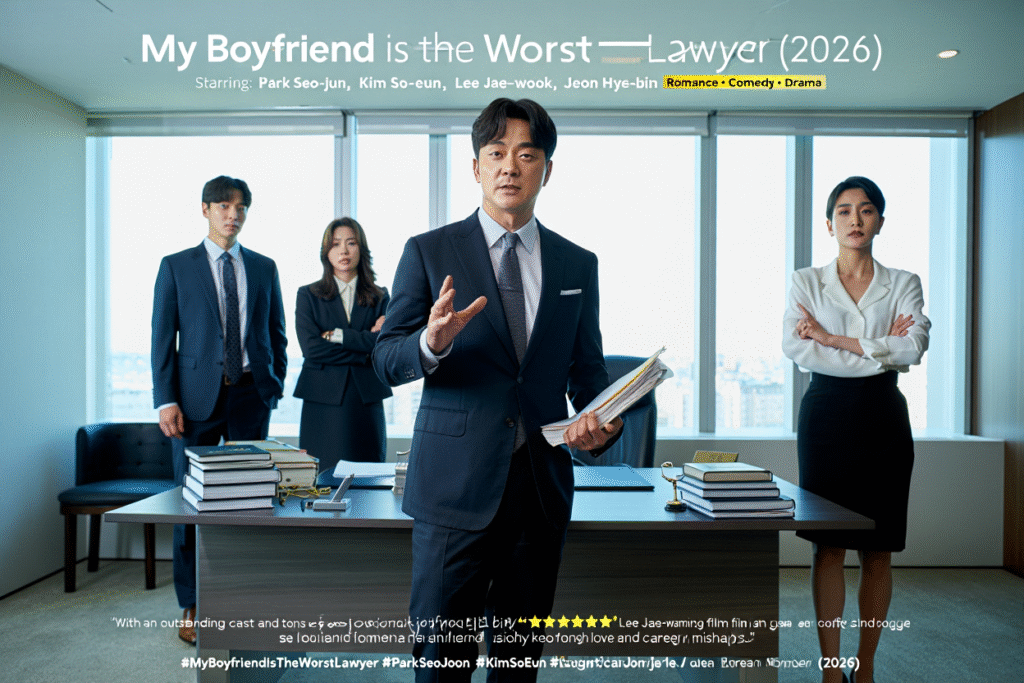 My Boyfriend is the Worst Lawyer (2026) is a charming, heartwarming, and hilariously unpredictable ride that mixes romance, comedy, and a touch of drama. Set against the backdrop of a struggling law firm, this delightful Korean film takes viewers on a journey through love, career mishaps, and the chaos that comes when a hopelessly incompetent lawyer falls for a no-nonsense legal assistant. With an all-star cast, including Park Seo-jun, Kim So-eun, Lee Jae-wook, and Jeon Hye-bin, the film is a rollercoaster of laughs, heartfelt moments, and undeniable chemistry.