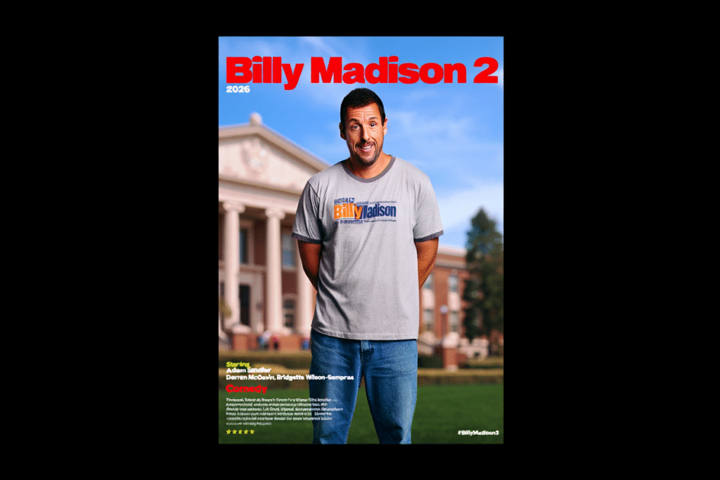Billy Madison 2 (2026) is the riotous comedy sequel we never knew we needed, bringing back the beloved man-child, Billy Madison, for another round of schoolyard antics, pranks, and immature wisdom. After years of thinking his days of childish hijinks were behind him, Billy (played by Adam Sandler) is dragged back to college by his teenage daughter, who challenges him to “finish school for real this time.” What follows is a hilarious blend of absurdity and heart as Billy once again tries—and fails—to act his age.