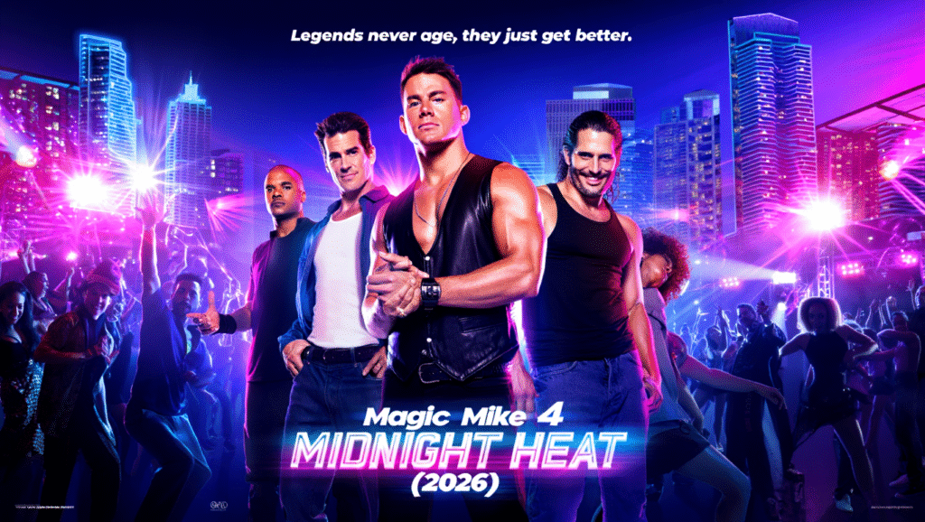 In Magic Mike 4: Midnight Heat (2026), the Kings of Tampa are back and hotter than ever for one final, explosive encore. Mike Lane (Channing Tatum), the legendary dancer, reunites with Ken (Matt Bomer) and Big Dick Richie (Joe Manganiello) to show that while legends may age, they only get better with time. This isn’t just a reunion—it’s a high-stakes, sweat-drenched battle to prove that they still own the stage and the hearts of their audience.