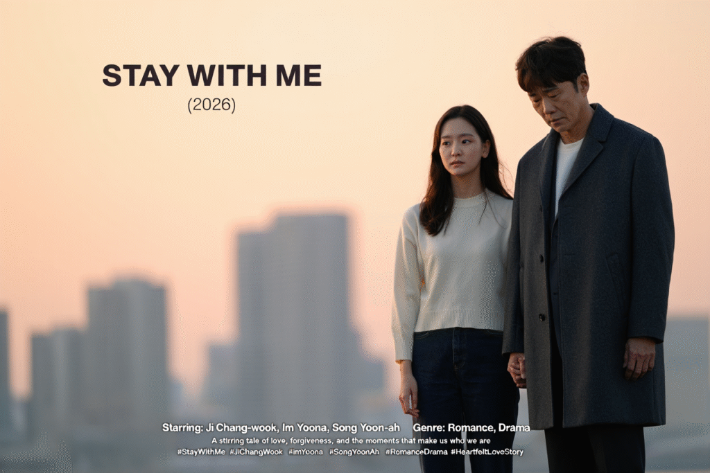 In Stay with Me (2026), love blossoms amidst personal struggles, heartbreak, and the weight of life-altering decisions. The film, starring Ji Chang-wook, Im Yoona, and Song Yoon-ah, delves into the delicate balance between holding on and letting go, as two people with fractured pasts try to navigate the complexities of love and self-forgiveness.