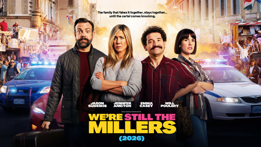 A decade has passed since the Millers retired from their life of crime, living the quiet suburban dream. But in We’re Still the Millers (2026), that peaceful existence shatters when their past comes knocking, quite literally. The dysfunctional, fake family—David (Jason Sudeikis), Rose (Jennifer Aniston), Casey (Emma Roberts), and Kenny (Will Poulter)—are dragged back into the game, only this time, the stakes are even higher, and the absurdity has reached new heights.
