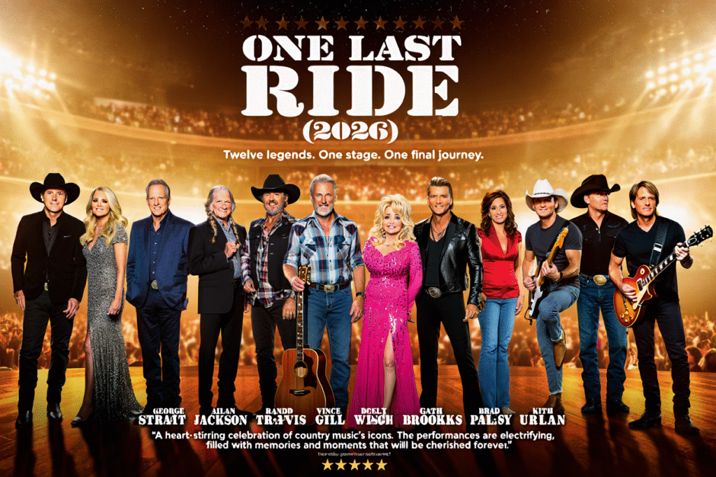 ONE LAST RIDE (2026) is not just a concert film—it’s a celebration of the timeless impact that country music’s greatest legends have had on the hearts of millions. This monumental documentary and concert event brings together twelve icons of country music for one final farewell, creating an unforgettable evening that transcends music itself. Featuring George Strait, Carrie Underwood, Willie Nelson, Alan Jackson, Randy Travis, Vince Gill, Dolly Parton, Garth Brooks, Reba McEntire, Brad Paisley, Tim McGraw, and Keith Urban, this film is a living time capsule of country music’s most cherished moments.