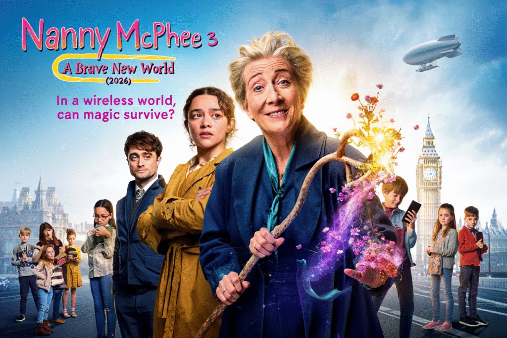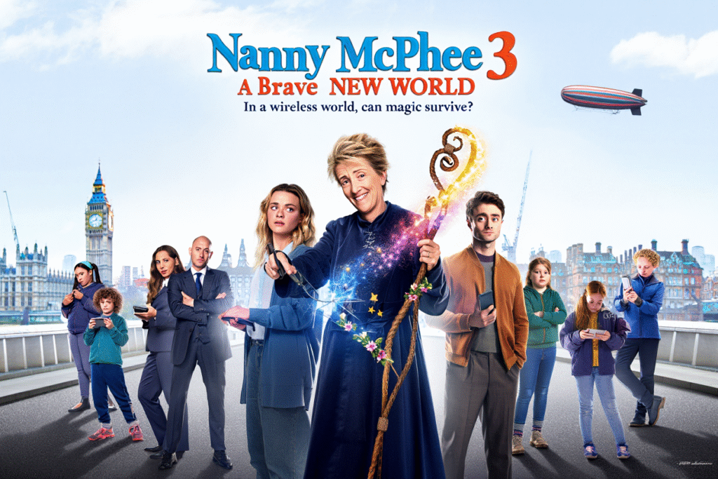 In Nanny McPhee 3: A Brave New World, the magical governess is backâand this time, sheâs facing the ultimate modern challenge. Emma Thompson reprises her iconic role as the snaggle-toothed, no-nonsense nanny, but her task is unlike any before. Arriving in a sleek, ultra-modern smart home in the heart of London, Nanny McPhee steps into a world where technology reigns supreme, and human connection is quickly slipping into the background.