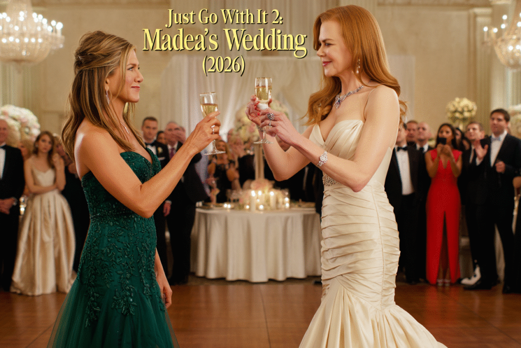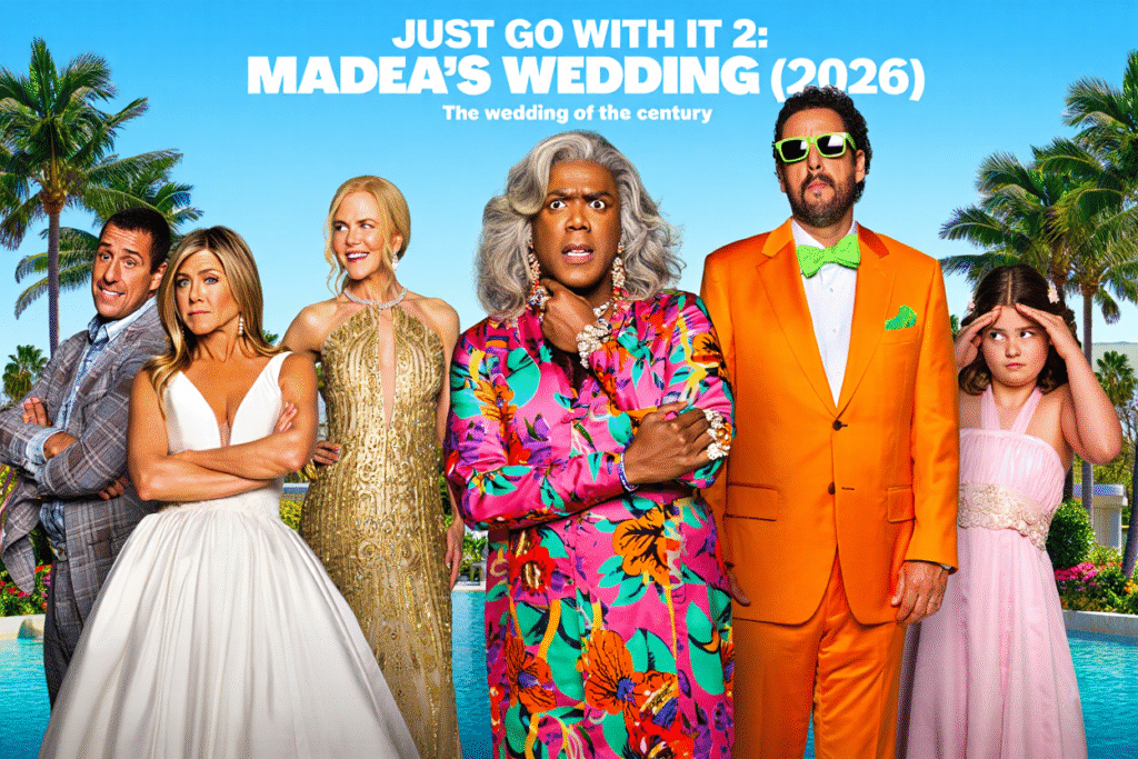 If the first lie started it all, the sequel detonates it. JUST GO WITH IT 2: MADEA’S WEDDING (2026) is the kind of crossover comedy that shouldn’t work on paper — and yet somehow explodes into outrageous, champagne-soaked brilliance on screen. Bringing together Adam Sandler, Jennifer Aniston, Nicole Kidman, Tyler Perry, Bailee Madison, and Nick Swardson, this film turns a simple wedding into a battlefield of secrets, egos, and gloriously bad decisions.