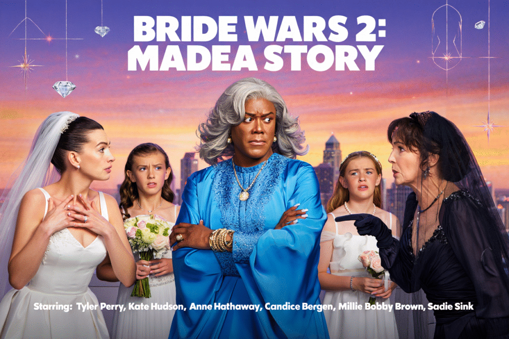When couture meets chaos, you don’t get a wedding — you get a reckoning. Bride Wars 2: Madea Story (2026) collides two worlds that were never meant to stay polite: the polished rivalry of Emma and Liv, and the unfiltered wisdom of Madea herself. With Tyler Perry stepping into the bridal battlefield alongside Kate Hudson and Anne Hathaway, plus the commanding presence of Candice Bergen and the next-generation spark of Millie Bobby Brown and Sadie Sink, the sequel doesn’t just raise the stakes — it flips the altar.