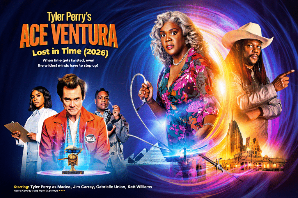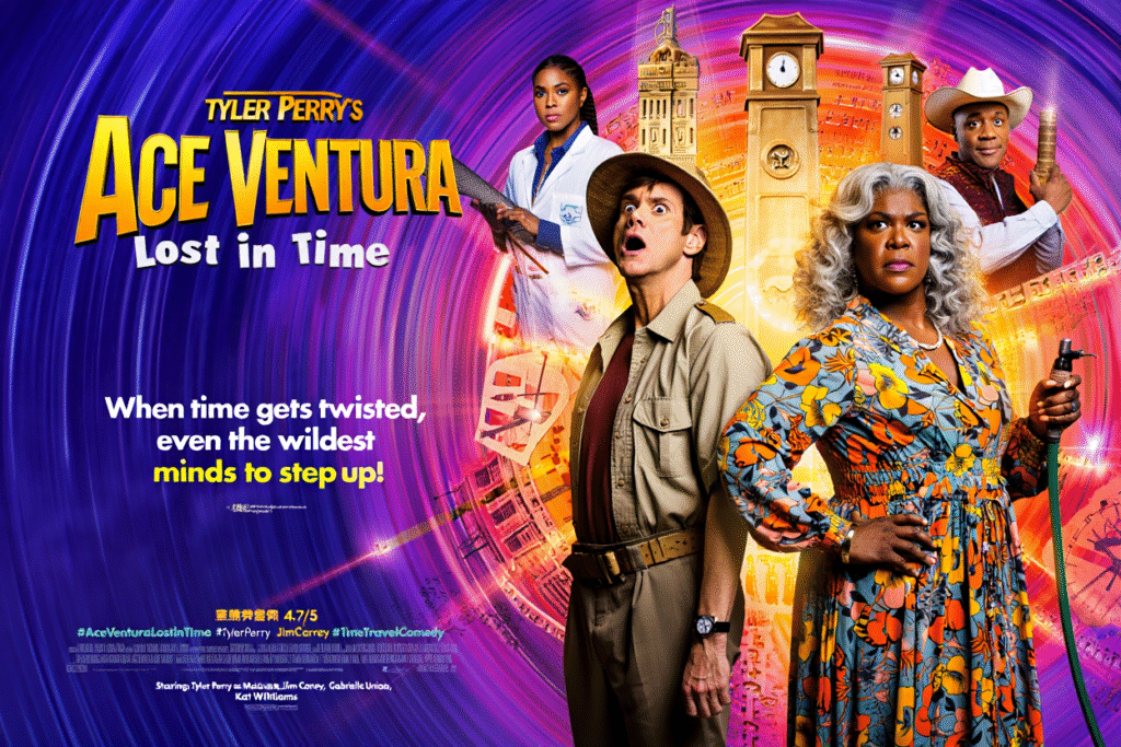 Tyler Perry’s Ace Ventura: Lost in Time is a time-bending comedy that brings together two of the most iconic comedic figures in film history—Ace Ventura, played by Jim Carrey, and Madea, brought to life by Tyler Perry. The result is a whirlwind of chaos, slapstick humor, and unhinged adventures that not only twist the fabric of time but also twist your funny bone in all the right ways.