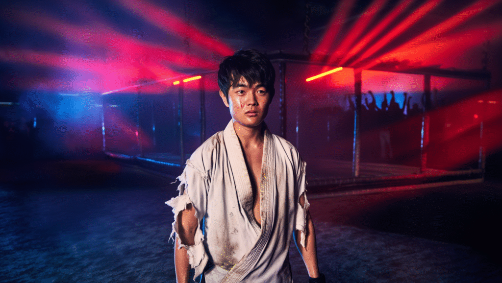 Visually, the film contrasts intimacy and scale. Candlelit dojos echo with quiet philosophy, while storm-lashed temples frame battles against both opponent and self. Neon city streets pulse with aggression, and underground arenas hum with brutality, reminding us how far martial arts culture has drifted.