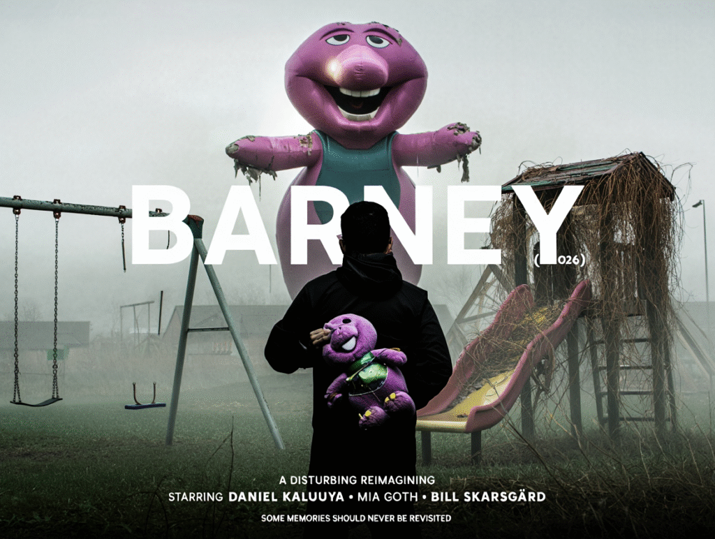 Starring Daniel Kaluuya, Mia Goth, and Bill Skarsgård, Barney is a chilling exploration of trauma, loss, and the haunting power of the things we once loved. The friends are drawn back to their hometown by the inexplicable disappearances of people who once lived there, only to uncover the horrifying truth behind their shared history. The town, once a place of comfort and joy, has transformed into a twisted version of itself, and the creature they once adored—the purple dinosaur, Barney—has become the embodiment of their worst fears.