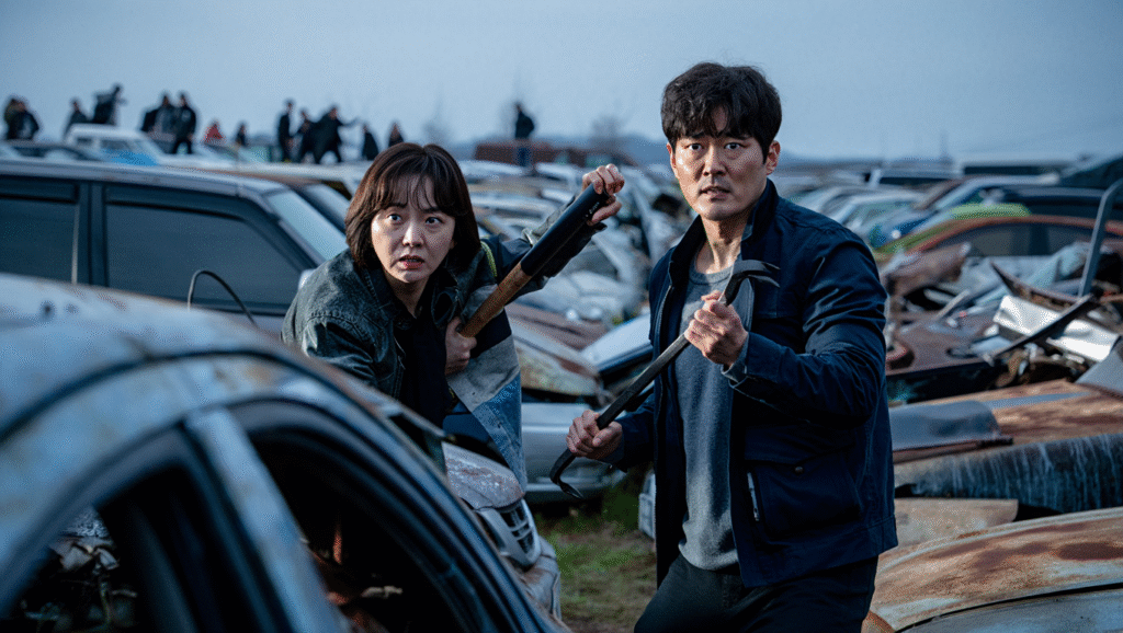 At his side stands Min-jin, portrayed with fierce resolve by Lee Jung-hyun. She fights not just against the infected, but against erosion—the slow decay of compassion in a lawless world. Her strength lies not in firepower, but in refusal.