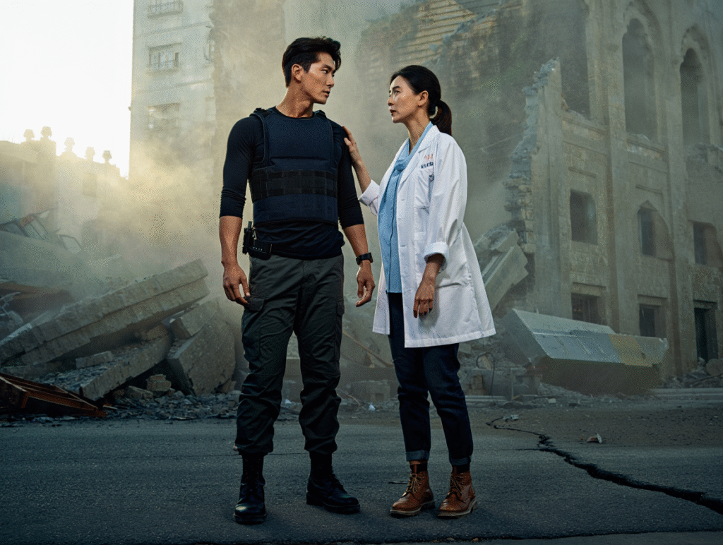 The tension escalates as a covert bioweapon is released during their mission, unleashing chaos in the war-torn region they are working to stabilize. What follows is a pulse-pounding journey as the couple is trapped behind enemy lines after a devastating earthquake. With nowhere to go and time running out, Si-jin and Mo-yeon must navigate treacherous terrain, battle their personal demons, and, most crucially, fight to stay alive. The intense setting forces them to confront the rawest aspects of their bond—resilience, fear, and hope—while the world around them crumbles into chaos.