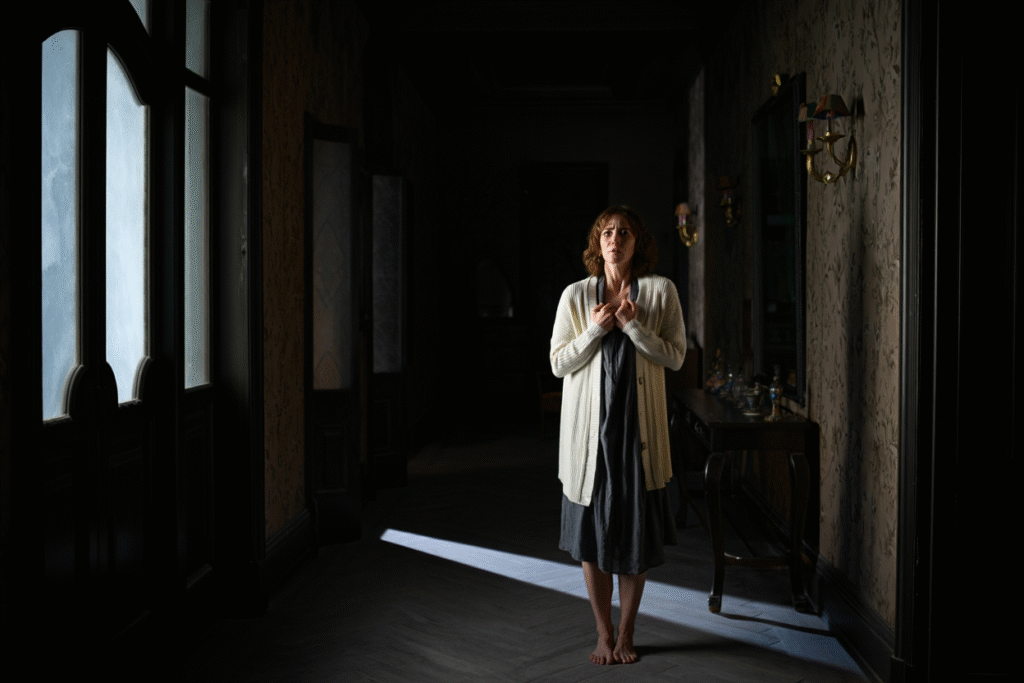 Vera Farmiga’s portrayal of the family matriarch is filled with emotional depth as she grapples with the grief of losing a loved one and the personal trauma that seems to follow her wherever she goes. Alongside her, Finn Wolfhard and Michelle Monaghan deliver powerful performances, portraying a family whose bonds are fraying under the pressure of both the haunting and their own fractured relationships. As the family’s emotional wounds are brought to the surface, they are forced to confront not only the spirits of the past but the painful truths that they have been trying to forget.