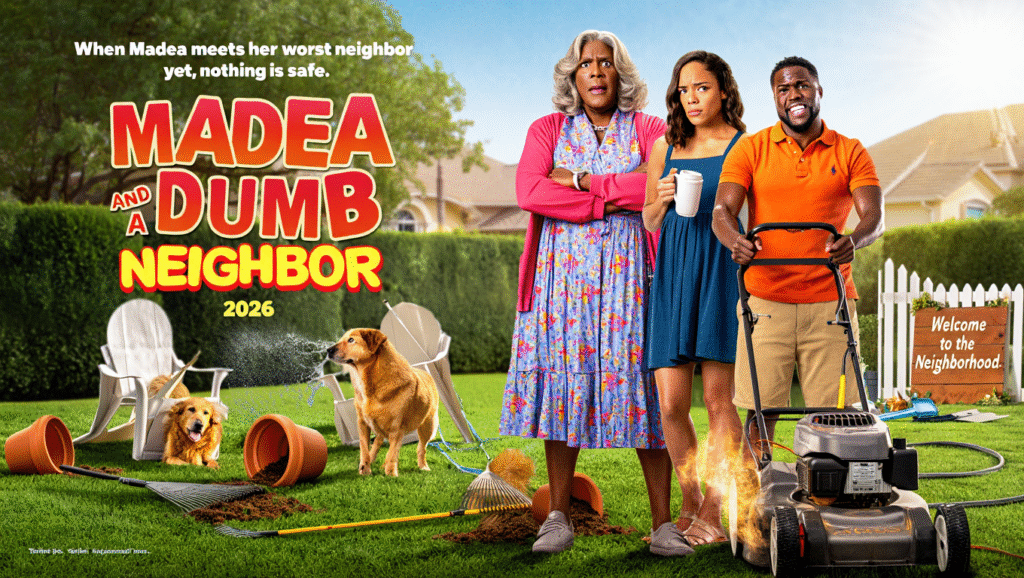 In Madea and a Dumb Neighbor (2026), Madea (Tyler Perry) is back, and this time she’s facing off with her most irritating neighbor yet. Enter Daryl (Kevin Hart), a well-meaning but utterly clueless guy who has just moved into the house next door. Daryl’s inability to do anything without causing mayhem becomes a constant source of frustration for Madea, who was perfectly content in her quiet home—until Daryl’s antics start affecting her daily life.