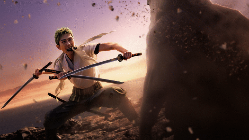 Among the crew, Roronoa Zoro sharpens both his blades and his resolve. The Grand Line offers him the kind of opponents he has always sought—warriors whose skill turns every battle into a deadly test of honor and endurance. Each clash reminds viewers that Zoro’s journey is not only about loyalty to his captain, but about becoming the greatest swordsman in the world.