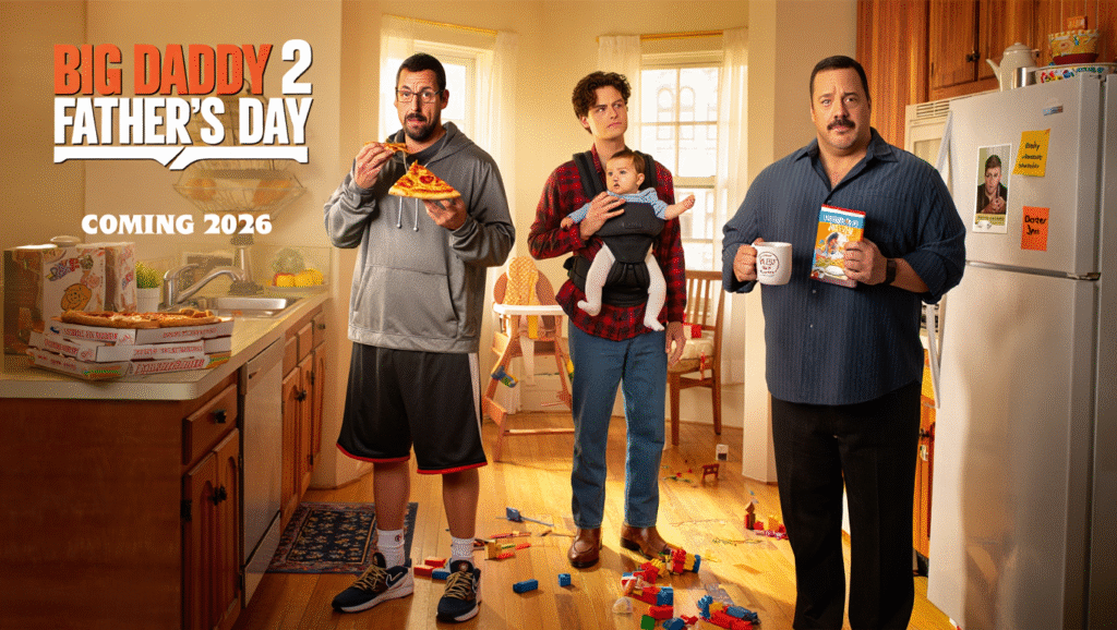 Few comedies from the late 90s left such a warm and ridiculous imprint on audiences as Big Daddy. Adam Sandler’s portrayal of Sonny Koufax—the lazy, rule-breaking man-child who accidentally became a father—was both outrageous and strangely heartfelt. Now, nearly three decades later, Big Daddy 2: Father’s Day revisits that legacy with a story that cleverly flips the script: the child who once needed a father is now about to become one himself.