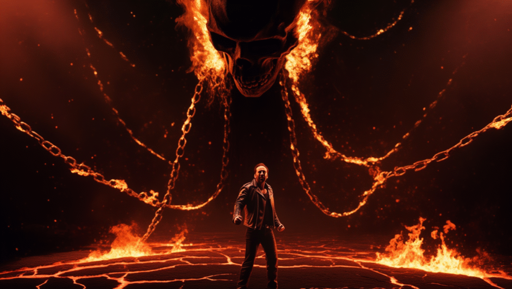 At the center once again stands Johnny Blaze, brought back with tortured intensity by Nicolas Cage. This is no longer the reckless stunt rider caught in a curse. This is a man whose suffering has become inseparable from his identity.