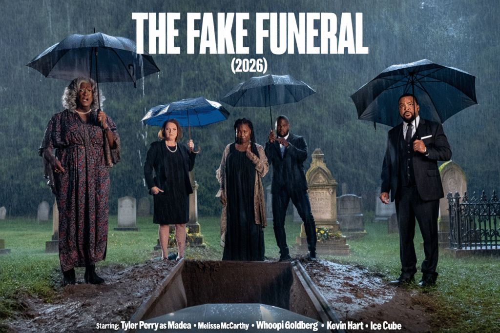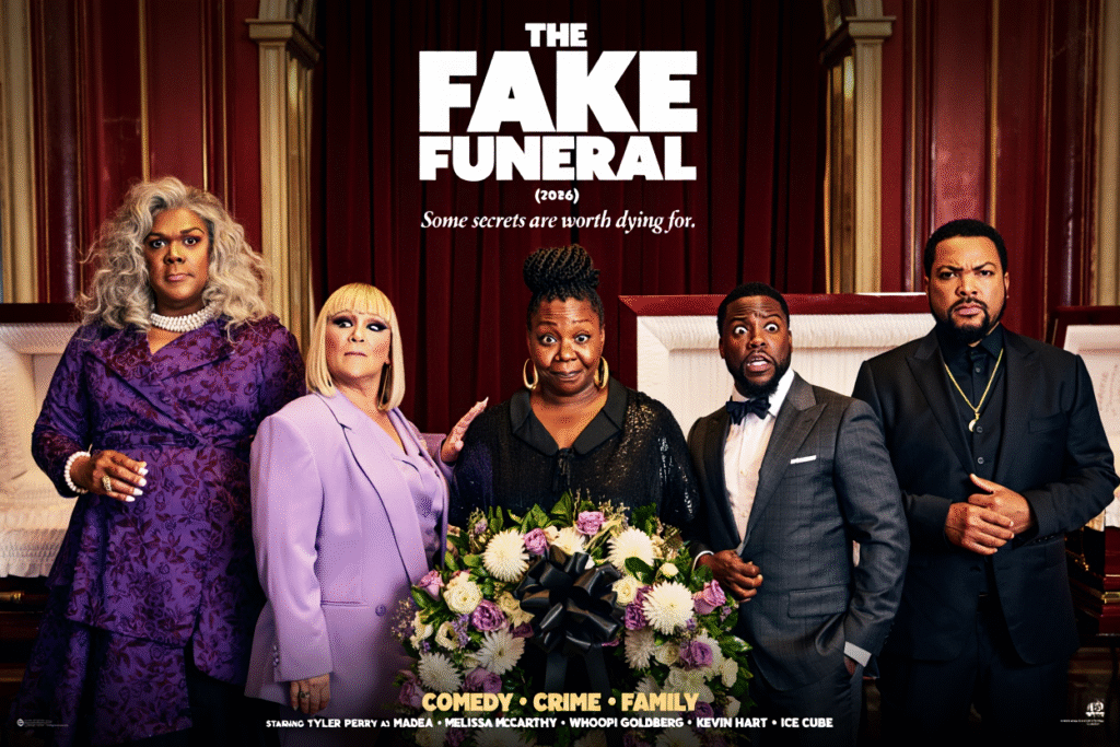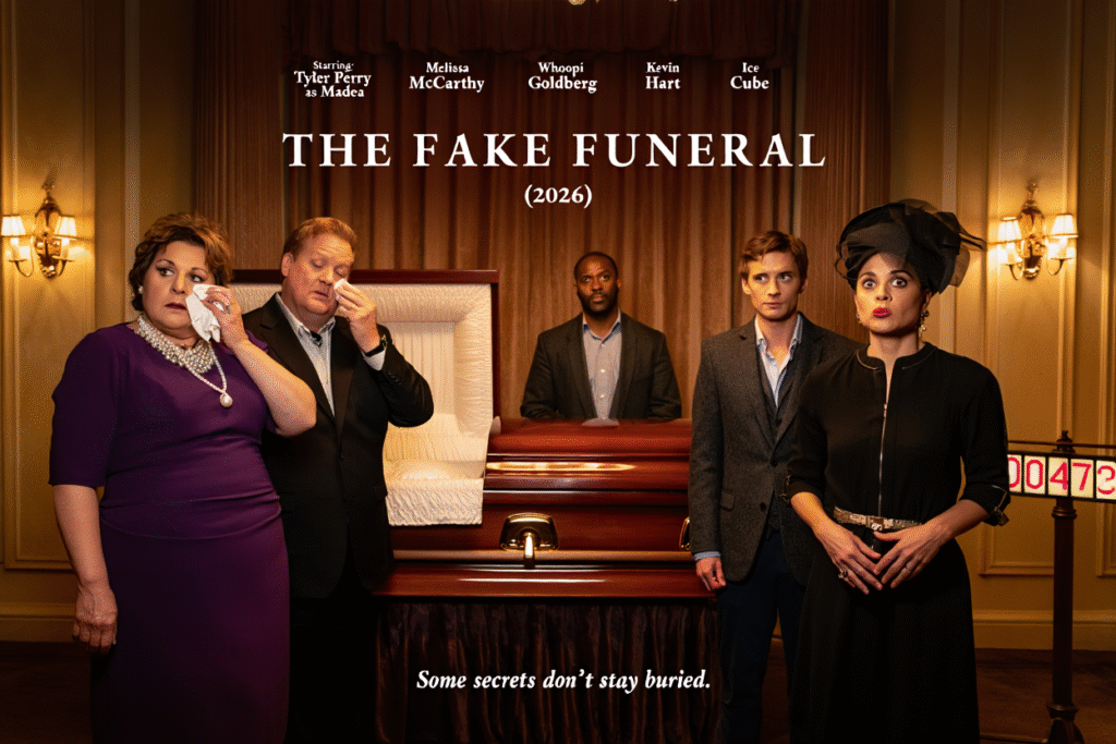 Funerals are meant for closure. In The Fake Funeral (2026), they’re just the beginning of the biggest lie anyone’s ever told. This wildly chaotic comedy-crime mashup brings together an explosive ensemble led by Tyler Perry as Madea, alongside Melissa McCarthy, Whoopi Goldberg, Kevin Hart, and Ice Cube. It’s loud, unpredictable, and built on one simple idea: what happens when pretending someone’s dead becomes dangerously real?