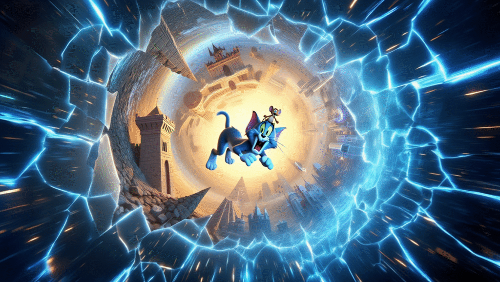 By the final act, the collapsing dimensions become almost symbolic: no matter what era, world, or timeline they inhabit, Tom and Jerry are eternally bound to the chase.